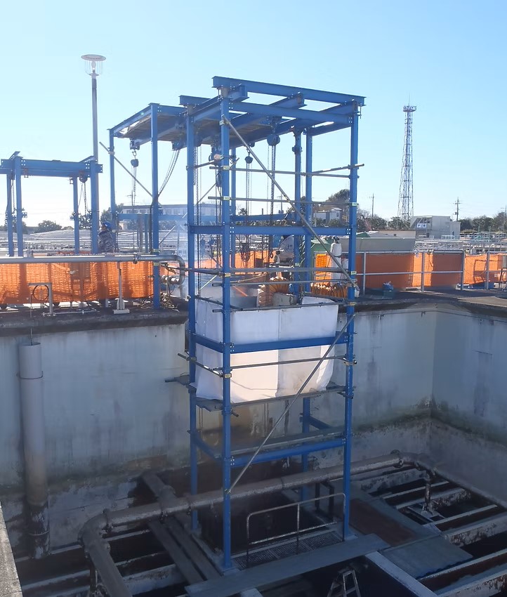 下水処理場で使用される特殊設備は非常に大きく重量のあるものが多くあります。