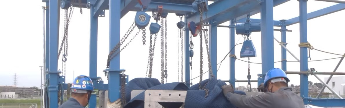 下水処理場で使用される特殊設備は非常に大きく重量のあるものが多くあります。
