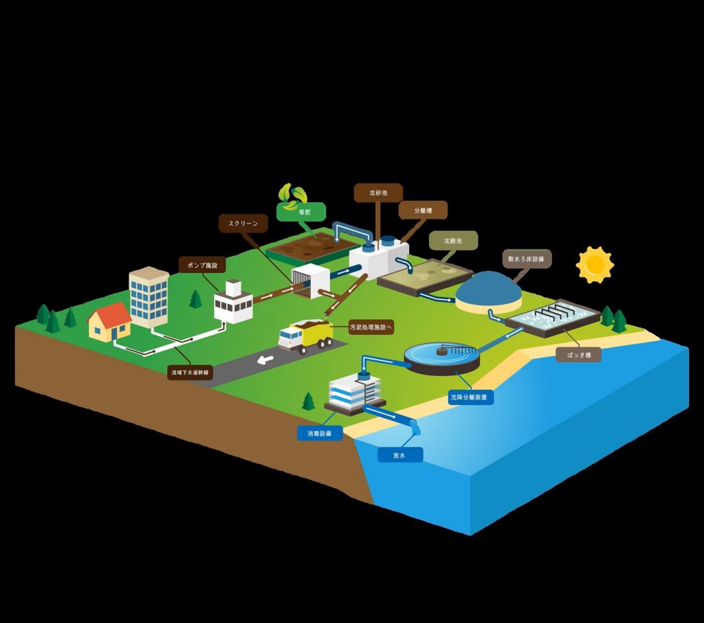 当社は関東を中心に上下水処理施設の機械据付工事、配管工事、解体工事、機器メンテナンス工事に関わらせていただいております。