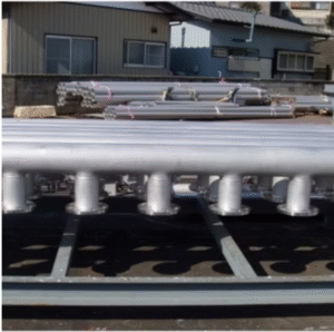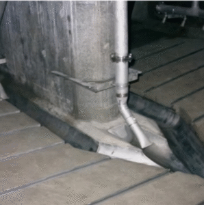 雨水沈砂池底の側壁に沿って並べられた集砂ノズルは、通過面積を大きく設けた形状で、滞留水中のきょう雑物による閉塞のおそれがなく清掃などの手間も不要です。